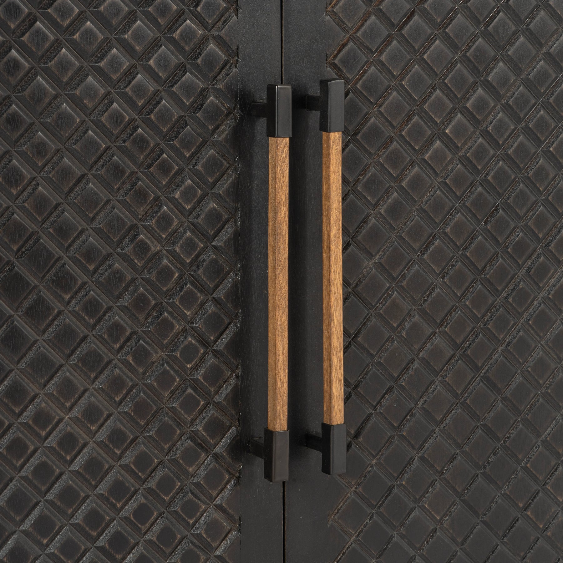 Designed to stand out, the Naya Cabinet celebrates the beauty of premium craftsmanship and detail. Constructed from solid mango wood, each piece features unique natural grain variations. Carved door panels and cast iron hardware bring subtle industrial character, giving this cabinet a distinctive presence in your space.