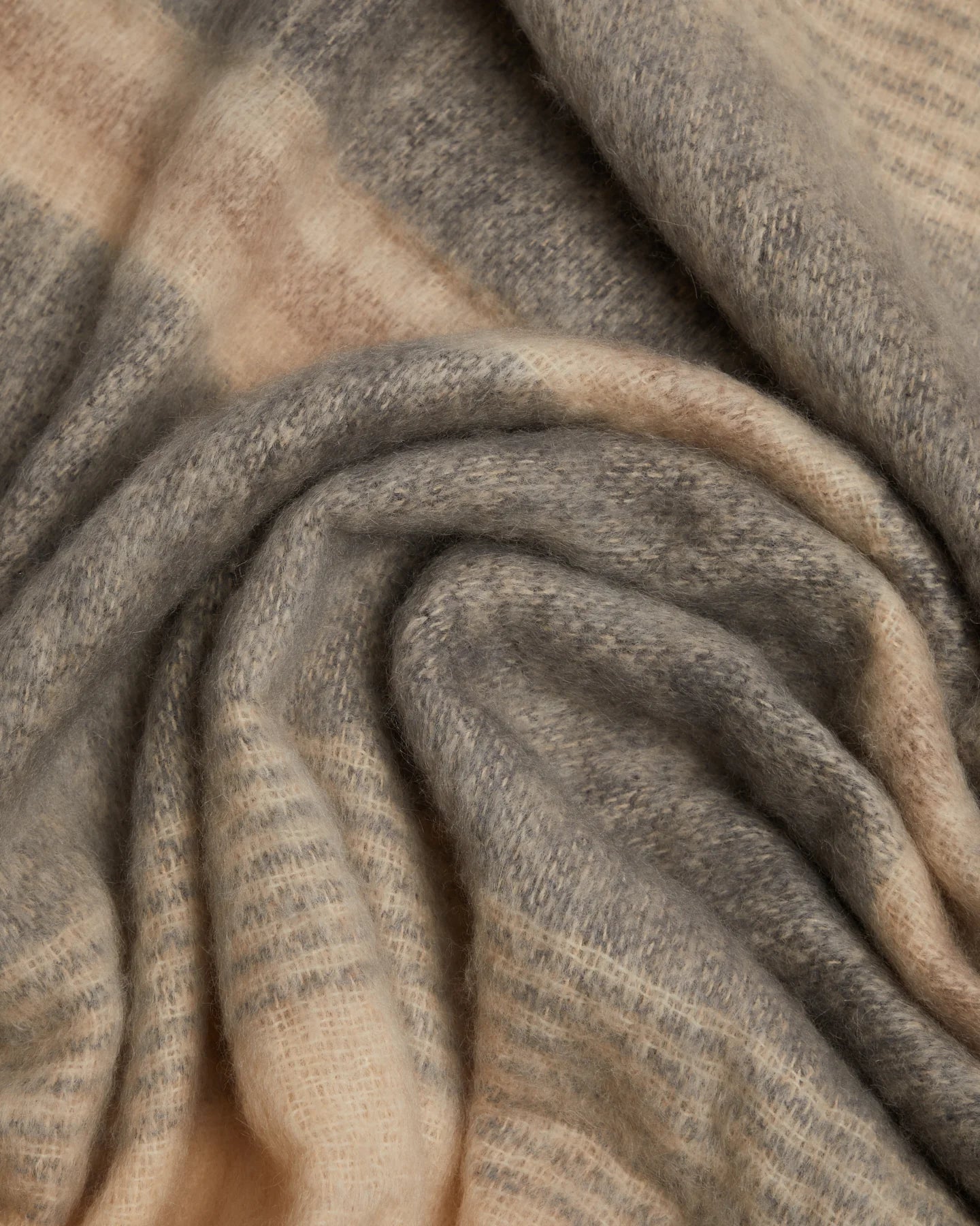 Wrap yourself in the ultimate luxury with this beautiful neutral striped Ombre mohair blanket, crafted for those with discerning taste. Meticulously woven from the finest blend of mohair and wool, this blanket is as soft as it is sophisticated, offering warmth without weight. The neutral hues adds character to any interior, creating a subtle statement of refined style.